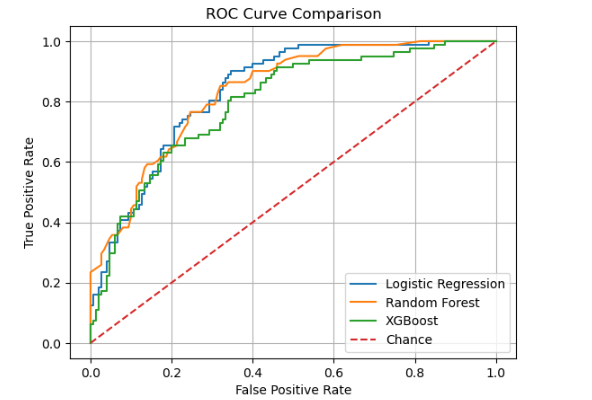In short, despite its simplicity, logistic regression gives the best trade-off between sensitivity and specificity here. The more complex models may need further hyperparameter tuning or engineered features to outperform this baseline.